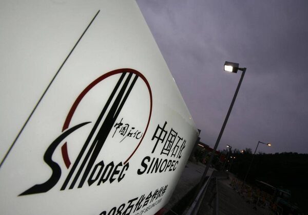 The Sinopec logo is seen at one of its gas stations in Hong Kong in this April 26, 2010 file photograph.BOBBY YIP/Reuters