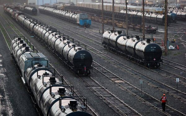 Rail tank cars carry between 500 and 700 barrels of oil. Transportation of oil by rail has exploded in recent years, as a shortage of pipeline capacity prompts crude producers to find alternative ways to market.