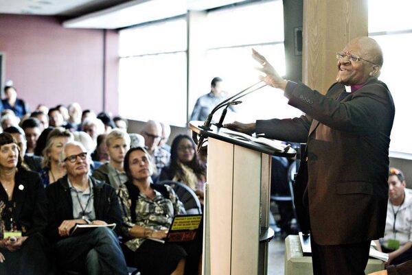 Archbishop Tutu was the main attraction this weekend at a Fort McMurray conference focused on treaty rights and the environment, and spoke to a room of about 200, including First Nations members from across the Prairies and Northwest Territories – many of whom spoke about their struggles their loss of traditional territory and concerns about safe drinking water due to energy projects. Archbishop Tutu said he was touched by their stories. Besides hurting the health of First Nation communities, he said projects such as the oil sands are worsening climate change.