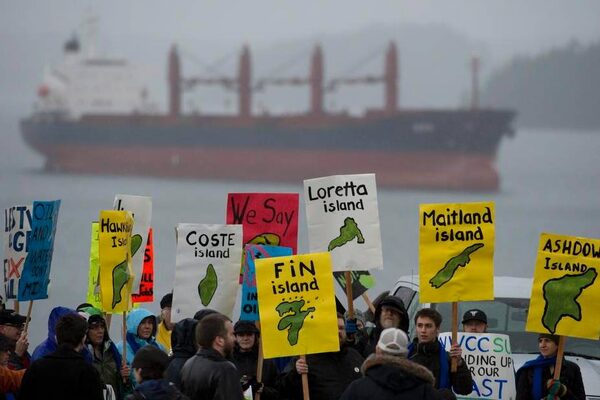 A group of protesters gathers outside the Northern Gateway hearings in Prince Rupert, B.C., on Dec. 10, 2012.Jonathan Hayward/The Canadian Press