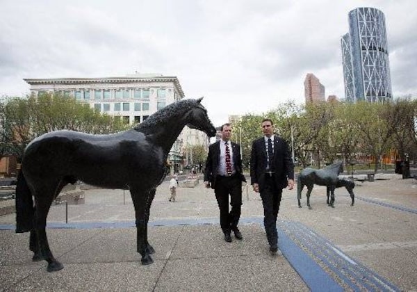 The mayor of Saint John, N.B., Mel Norton, right, arrives at Calgary city hall Tuesday, with assistant Christopher Dever.TODD KOROL