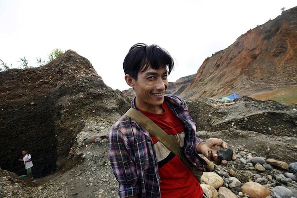 Too Aung, a 30-year-old handpicker, shows the unwashed jade that he just found in a jade mine in Hpakant township. A report says sales of Burmese jade totalled about $8-billion in 2011.MINZAYAR/Reuters
