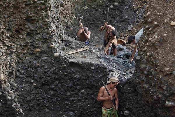 Handpickers search for jade through rubble dumped by mining companies at a jade mine in Hpakant township. Jade is smuggled by truck to China by so-called ‘jockeys’ through territory belonging to either the Burmese military or the Kachin Independence Army (KIA), both of whom extract tolls.MINZAYAR/Reuters