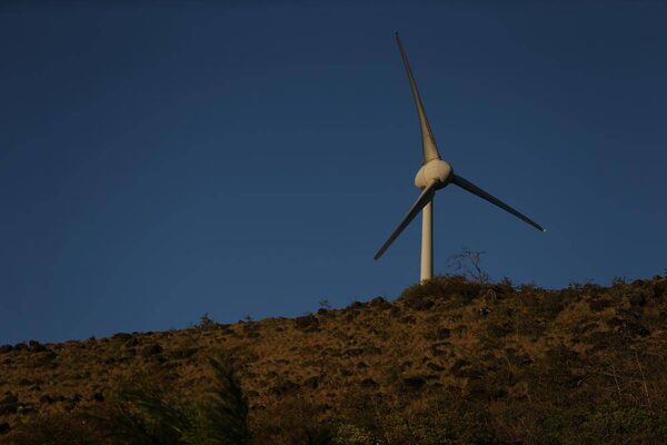 A wind turbine run by the Costa Rican Electricity Institute (ICE) is seen along a ridge line on March 26, 2015, in Guanacaste, Costa Rica.Joe Raedle/Getty Images