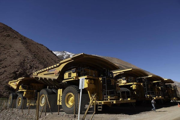 In this May 23, 2013 photo, mining trucks sit parked on the facilities at the Barrick Gold Corp's Pascua-Lama project facilities in northern Chile.Jorge Saenz/The Associated Press