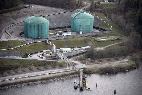 The Westeridge loading dock, centre, for Kinder Morgan’s Trans Mountain expansion project is seen in Burnaby, B.C., in November, 2015.JONATHAN HAYWARD/The Canadian Press