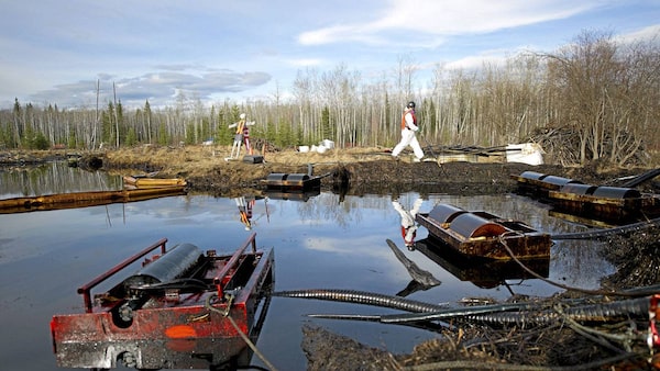 Crews work to clean up oil from a pipeline spill in northern Alberta in April.Jimmy Jeong