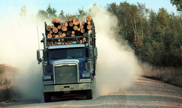 A load of lumber is trucked through the forest surrounding Edmondston, New Brunswick, Canada in this September 2001 photo. International Paper Co., Temple-Inland Inc. and other U.S. lumber companies rejected plans to end a dispute over $7 billion of Canadian lumber imports, a Canadian official said, causing talks to break down.NORM BETTS