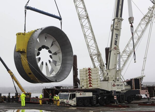 Next weekend, the first of two 16-metre-diameter turbines that look like components from oversized jet engines will begin a two-week journey by barge from a shipyard in Pictou – on the north side of Nova Scotia facing Prince Edward Island. It must travel around Cape Breton Island because it is too big to go through the Strait of Canso, the channel that lies between Cape Breton and the mainland. Essentially, it will have to circumnavigate the province to reach the Bay of Fundy.