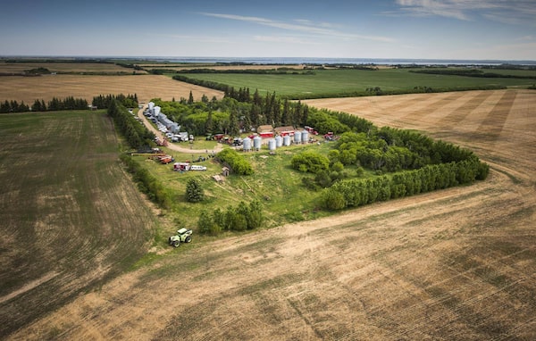 The Tait family as seen from the air during their farm equipment auction June 9, 2015 in Meota, Saskatchewan. Saskatchewan’s Ministry of Agriculture has amended its legislation that sets rules for farmland ownership.John Lehmann/The Globe and Mail
