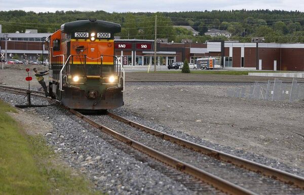 An engine runs on the railway in downtown Lac MeganticMATHIEU BELANGER/Reuters