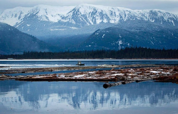 Logs are moved on the Douglas Channel at dusk in Kitimat, B.C., on Jan. 11, 2012. Shell Canada Ltd. has sent its plans to build a $4-billion pipeline and liquefied natural-gas export terminal at Kitimat in northwestern British Columbia to federal and provincial environmental regulatory agencies.DARRYL DYCK/The Canadian Press