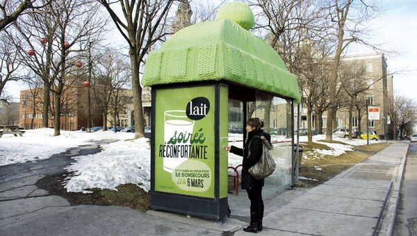 4. Out-of-home is so hot, in fact, that one such campaign took home the Best of Show honour at Thursday night's Media Innovation Awards. The Quebec Milk Bureau's "Natural Source of Comfort" effort, adapted by Touché!PHD from an idea by BBDO Montreal, saw transit shelters outfitted with massive knitted wool tuques, space heaters and sound systems that piped in comforting stories. The campaign helped Quebeckers get through a tough winter. So, given the Fast Company article, we got to wondering if maybe ad people everywhere might not want to throw a wool cap on their offices, pipe in some soothing music, and hunker down for comfort and creativity sessions. Industry, heal thyself.