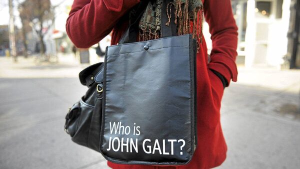 Two weeks ago, she was about to purchase a new pair of pants when a friend who knew her anti-Rand position told her of the "John Galt" shopping bags.
