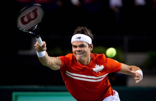 Canadian Milos Raonic during the first set of a Davis Cup tennis quarter-final singles match in Vancouver on April 7, 2013.DARRYL DYCK/The Canadian Press