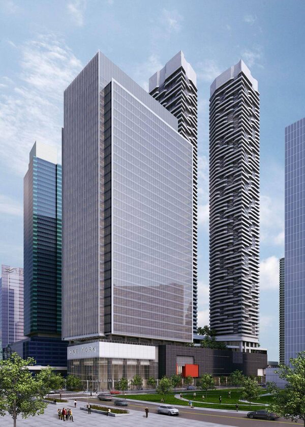 Set to open in June, 2016, the One York Street and Harbour Plaza Residences development currently under construction will add to the burgeoning wave of development sweeping through Toronto’s south core. The area of green space to the south of One York Street will be created by the removal of the off-ramp from the Gardiner Expressway, made possible by rezoning funds paid by Menkes Developments and the Heathcare of Ontario Pension Plan to the City of Toronto. “It was important to us to push for the park,” says Dermot Sweeny, principal of Sweeny Sterling Finlayson &Co. Architects Inc., “because it adds value to urban life, to the people living and working here and because it also gives a beautiful forecourt to the people in our office building. It adds tremendous value.”