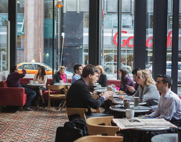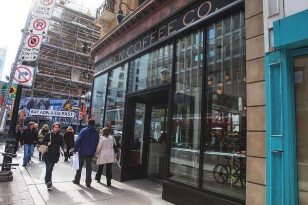 Down on Yonge Street, Dineen Coffee Co. offers a more old-world style of coffee-house ambience. Located in the Dineen Building, which was originally built in 1897 and is now a heritage building, the retail space is situated at the corner of Yonge and Temperance streets.Jennifer Roberts/The Globe and Mail