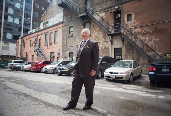 The project hinges on the gift of a 450-square-metre piece of property located directly south of Massey Hall. This gritty urban plot, currently a surface parking lot and garbage storage area, is being offered by MOD Developments Inc. ‘This gift of land is so valuable to us because we’re street-bound on the other three sides,’ says Charles Cutts, president and CEO of Corp. of Massey Hall and Roy Thomson Hall, seen here on the gifted lot.Jennifer Roberts/The Globe and Mail