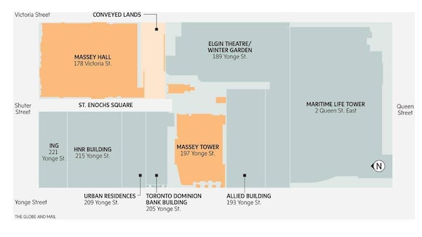 MOD Developments Inc. intends to build a 60-storey condominium, called Massey Tower, in the same downtown Toronto city block. Gary Switzer, CEO of MOD, says the portion of the land he’s ceding to Massey Hall has been appraised at about $6.5-million. Toronto city council will vote on MOD’s condo proposal in mid-July. If approved, Massey Hall will likely take ownership of the small strip of land by late summer or early fall, Mr. Switzer says.