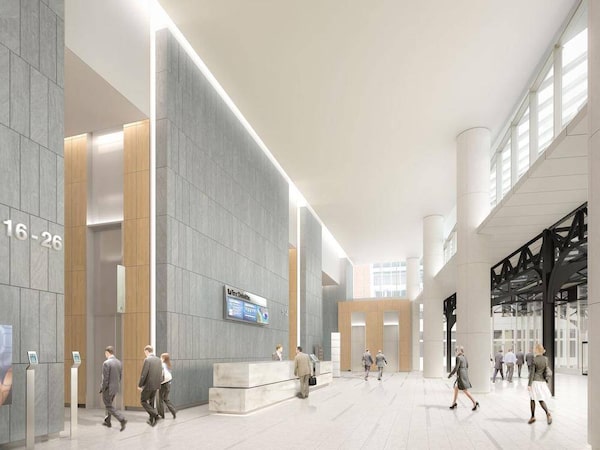 Outside in the Deloitte Tower courtyard, Cadillac Fairview is planning to build a reflecting pool that will become a public skating rink in the winter. ‘There will only be one skating rink that will be next door to the Bell Centre. We thought that was a great public amenity that can bring life to the courtyard, and we want it to be used. It’s a bit Rockefeller Plaza-like,’ says Sal Iacono, senior vice-president, development and portfolio management for Cadillac Fairview in Eastern Canada. A 250-seat restaurant is also planned for the courtyard level. ‘Windsor Station [seen here with its green roof] is a heritage protected building … and it was quickly agreed that the juxtaposition of a brand-new building with a heritage building alongside it would be the best of all worlds. We picked Kohn Pedersen Fox out of New York because of our previous work with them, and they were also the designers of 1250 René-Lévesque half a block away,” Mr. Iacono adds.