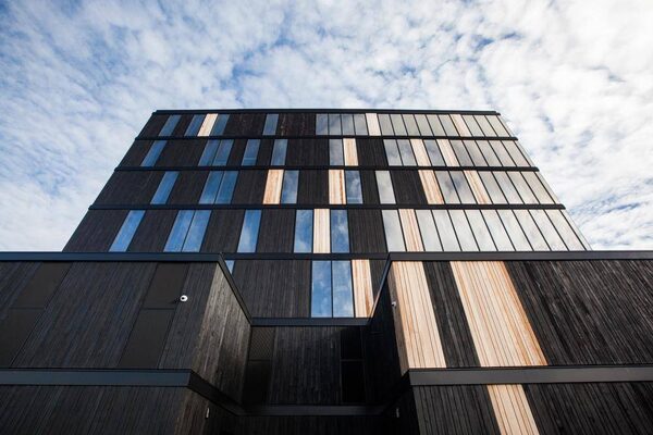 At 29.5 metres and clad in charred western red cedar, the Wood Innovation and Design Centre in Prince George, B.C., is the tallest contemporary wood structure of its type in North America.