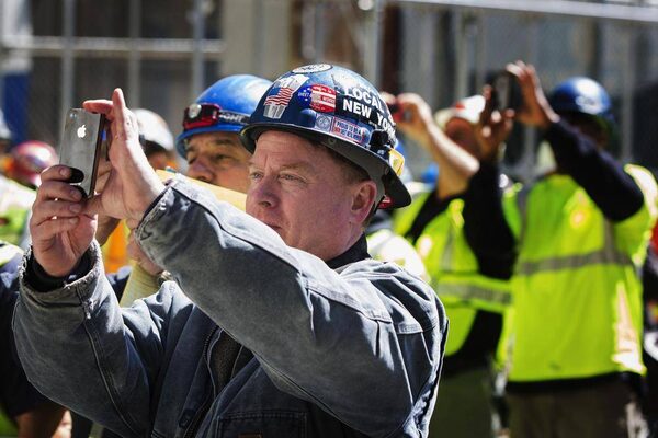 Workers at the Ground Zero site take photographs. Once a beacon is installed, the tower will stand 541 metres (1,776 feet – a reference to the birth of the nation in 1776.) That will make it the tallest building in the Western Hemisphere, though still well short of the world’s tallest structure.LUCAS JACKSON/Reuters
