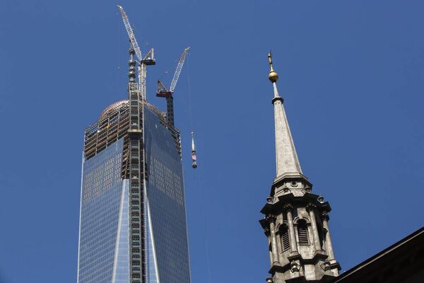 The steeple of St. Paul’s Chapel rises into the sky next to One World Trade Centre. The building is rising at the northwest corner of the site where the twin towers were destroyed in the Sept. 11, 2001, terror attacks, killing nearly 3,000 people. ‘It’s not just a construction site,’ said Steven Plate, who is overseeing construction of the World Trade Center. ‘It’s truly a mission for all of us.’LUCAS JACKSON/Reuters