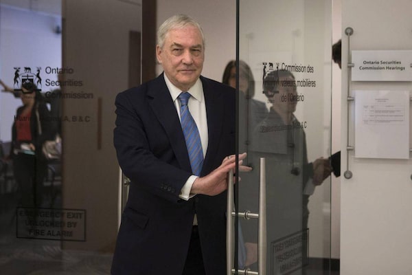 Conrad Black steps out of a hearing at the Ontario Securities Commission during a break in proceedings in Toronto on Oct. 8, 2014.Chris Young/The Canadian Press