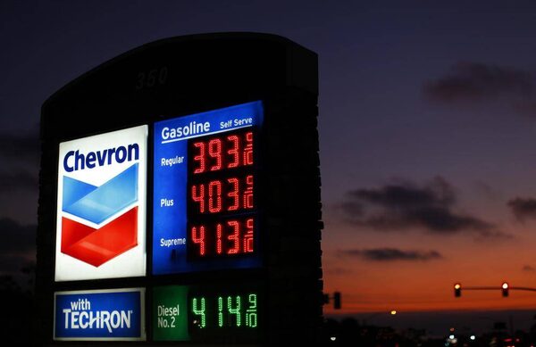 The sign of a Chevron gas station is pictured in Encinitas, California in this July 28, 2011 file photo.MIKE BLAKE/Reuters
