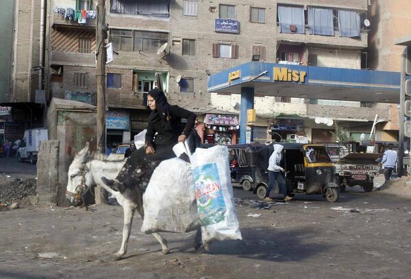 A girl rides a donkey in a shanty town in Cairo Jan. 10, 2013. Political strife in late November and early December set off a rush to convert Egyptian pounds to U.S. dollars, sending the currency to record lows.ASMAA WAGUIH/Reuters