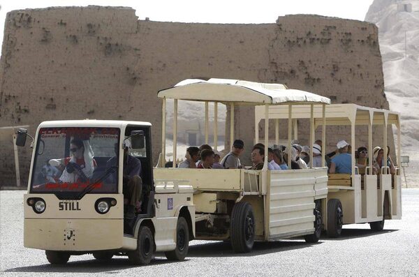 Tourists are driven from the entrance of the Temple of Hatshepsut to its main corridor Feb. 27.MOHAMED ABD EL GHANY/Reuters
