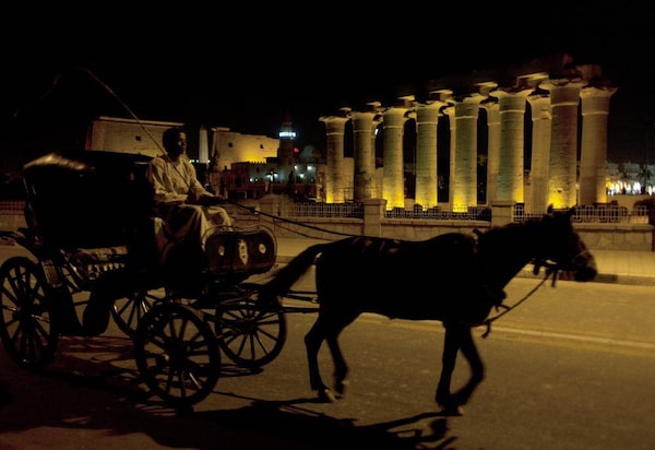 A cart passes the Luxor Temple while roaming the streets for customers. Political turmoil in Cairo has deterred some Asian and European tourists.Nasser Nasser/The Associated Press