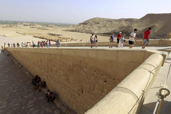 Foreign tourists visit Queen Hatshepsut’s temple. It was once Luxor’s busiest tourist site.Nasser Nasser/The Associated Press