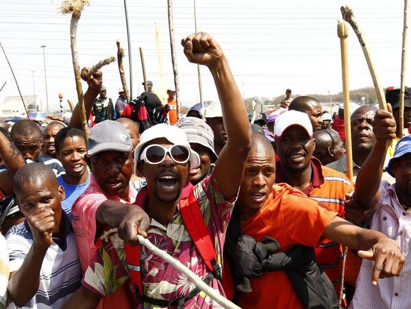 The unrest has also spread to the gold sector. Gold Fields on Monday said 15,000 workers were now involved in an illegal strike at its KDC gold mine.