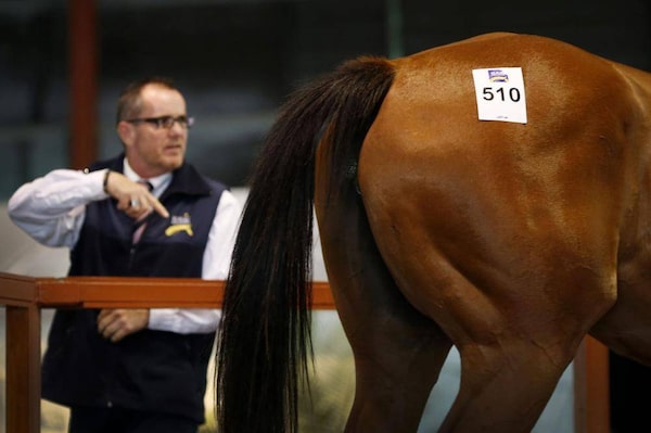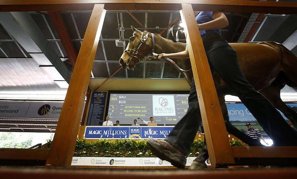 A horse walks on stage at the sales complex. Mr. Tinkler started Patinack Farm in 2007 and, in 2008, spent A$19-million on 59 horses.TIM WIMBORNE/Reuters