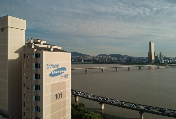 Samsung apartment buildings are seen in Seoul on August 25, 2017.ED JONES/AFP / Getty Images