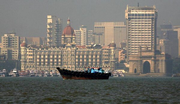 A fishing boat passes the Taj Mahal hotel in Mumbai. The price of homes in or near the city puts them out of reach for most middle-class Indians.© Jayanta Shaw/Reuters