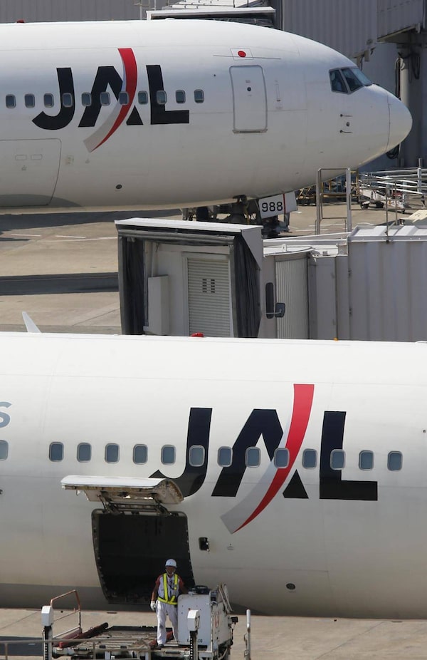 A Japan Airlines aircraft parks on the tarmac at Haneda airport in Tokyo Aug. 30, 2012. Japan Airlines set a price range Thursday for its IPO, which will be the second-largest this year after Facebook Inc.KIM KYUNG-HOON/Reuters