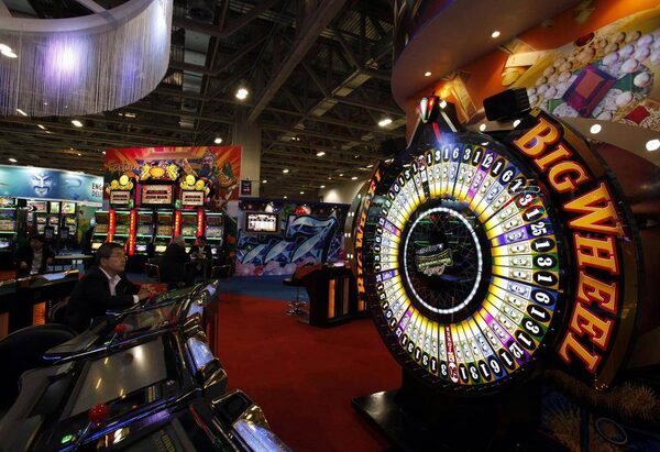A visitor sits in front of a gaming machine at Gaming Expo Asia in Macau in this May 22, 2012 file photograph.BOBBY YIP/Reuters