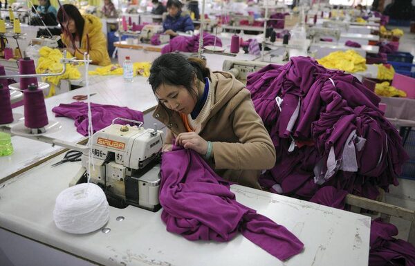 Employees work at a garment factory in Wuhu, Anhui province in this February 1, 2012 file photo. China's factory sector contracted for an eighth straight month in June 2012, with export orders and prices turning in their weakest showing since early 2009.JIANAN YU/Reuters