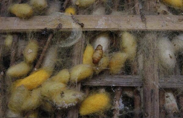 A silk worm is seen with its cocoon in Van Phuc, a silk making village in Vietnam, on July 4, 2012. The village, located outside of Hanoi, has been making silk for more than 1,200 years.KHAM/Reuters