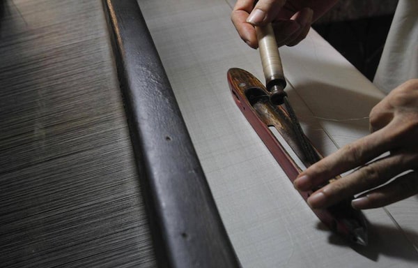 Nguyen prepares a roll of silk for shuttle.KHAM/Reuters