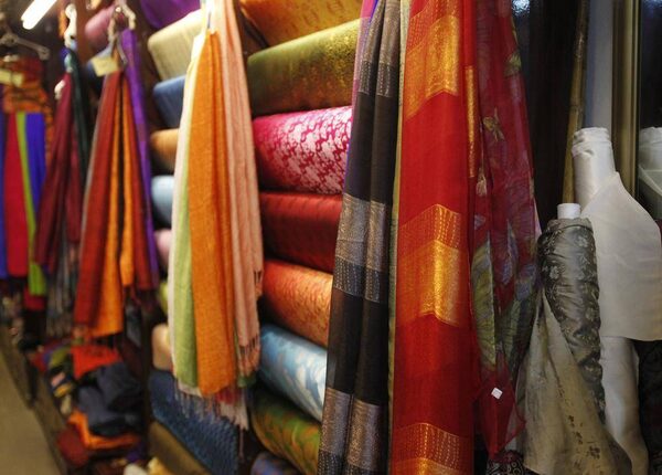 Silk scarves are displayed for sale at a stall in Van Phuc.KHAM/Reuters