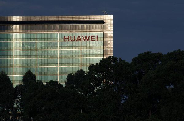 A Huawei plant is lit by a setting sun in the southern Chinese township of Longhau in Guangdong province.© Bobby Yip / Reuters/Reuters