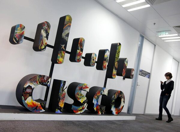 A Cisco logo is seen at its customer briefing centre in Beijing, November 14, 2013.KIM KYUNG-HOON/Reuters