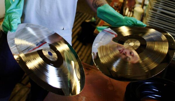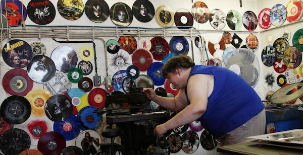 Employee Radek Sikal separates the master record from a matrix copy after galvanization of vinyl records. GZ Media is now spinning profits on records for the likes of the Rolling Stones, U2, Bob Dylan and David Bowie.PETR JOSEK/Reuters