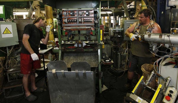 Technicians maintain press machines used for the creation of vinyl records. With seven million records made in 2012 and an expected 10 million this year, GZ Media says it is the world's biggest vinyl record producer.PETR JOSEK/Reuters