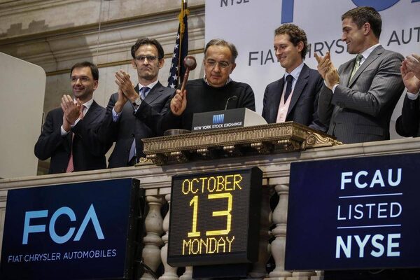 Fiat Chrysler CEO Sergio Marchionne rings the closing bell to celebrate the company’s listing on the NYSE on Oct. 13, 2014.EDUARDO MUNOZ/Reuters