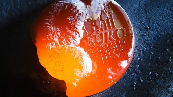 A one euro coin is melted with a welding torch in this photo illustration taken in Bern November 8, 2011. According to sources quoted by Reuters, euro zone members have been told to prepare a contingency plan for Greece leaving the economic zone.MICHAEL BUHOLZER/Reuters
