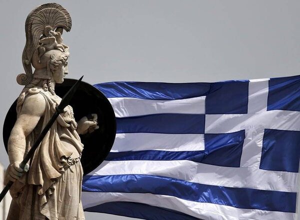 A Greek national flag flutters next to a statue of ancient Greek goddess Athena, in Athens May 21, 2015.Alkis Konstantinidis/Reuters